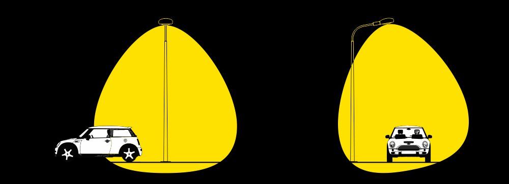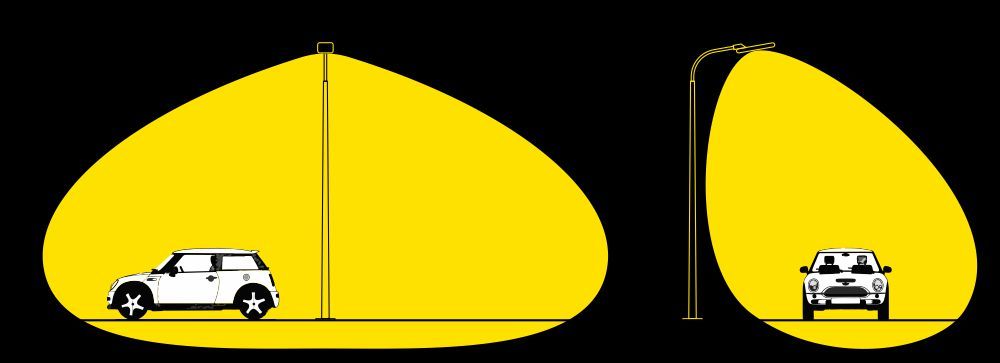Направленный световой поток вдоль дороги 150° и поперек дороги 75°.